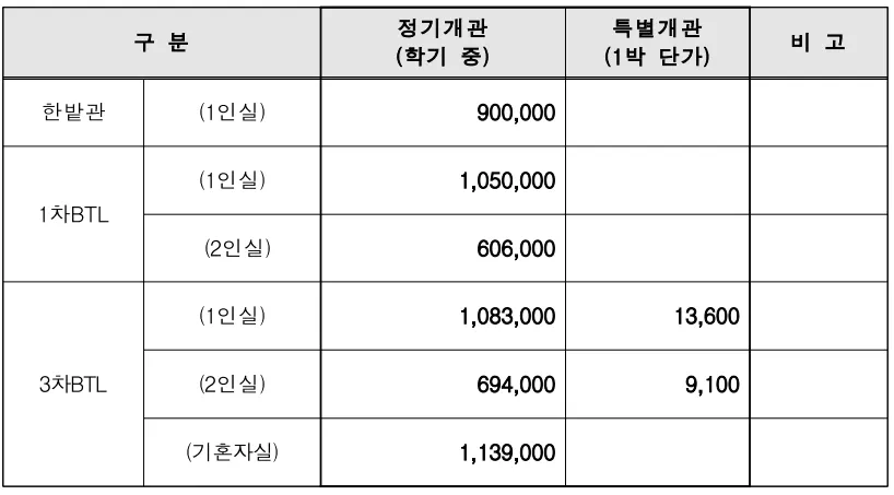 3) 납부계좌 및 기간은 학생생활관 홈페이지 참조