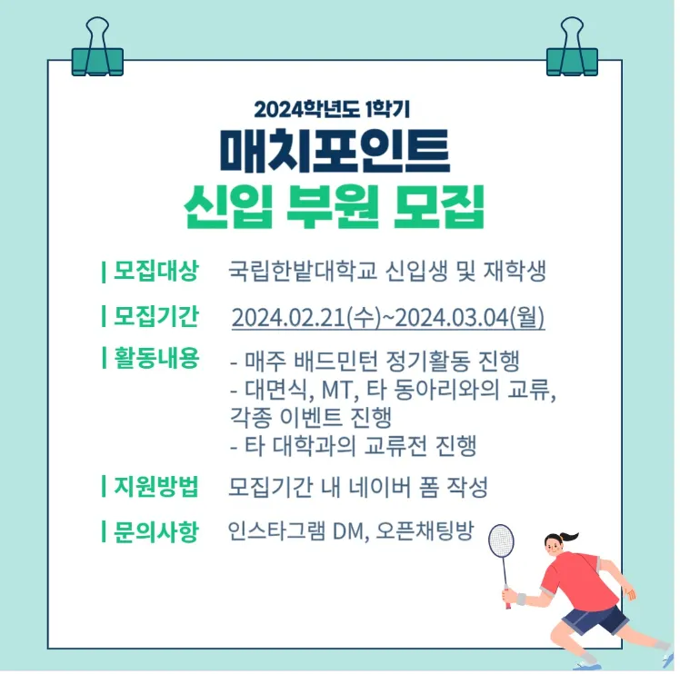 국립 한밭대학교 배드민턴동아리 매치포인트